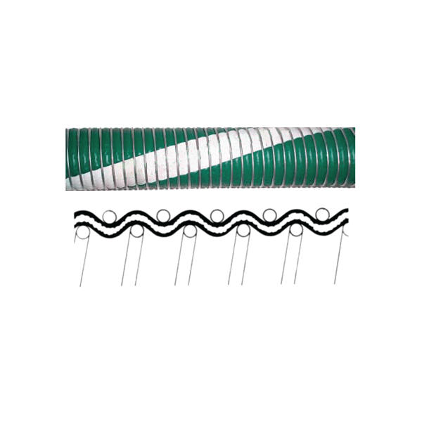 omposite hose made from polypropylene fabrics and films with a double layer of abrasion resistant PVC coated fabric cover. inner wire of stainless steel 316 and outer wire is Gal vanized mild steel.